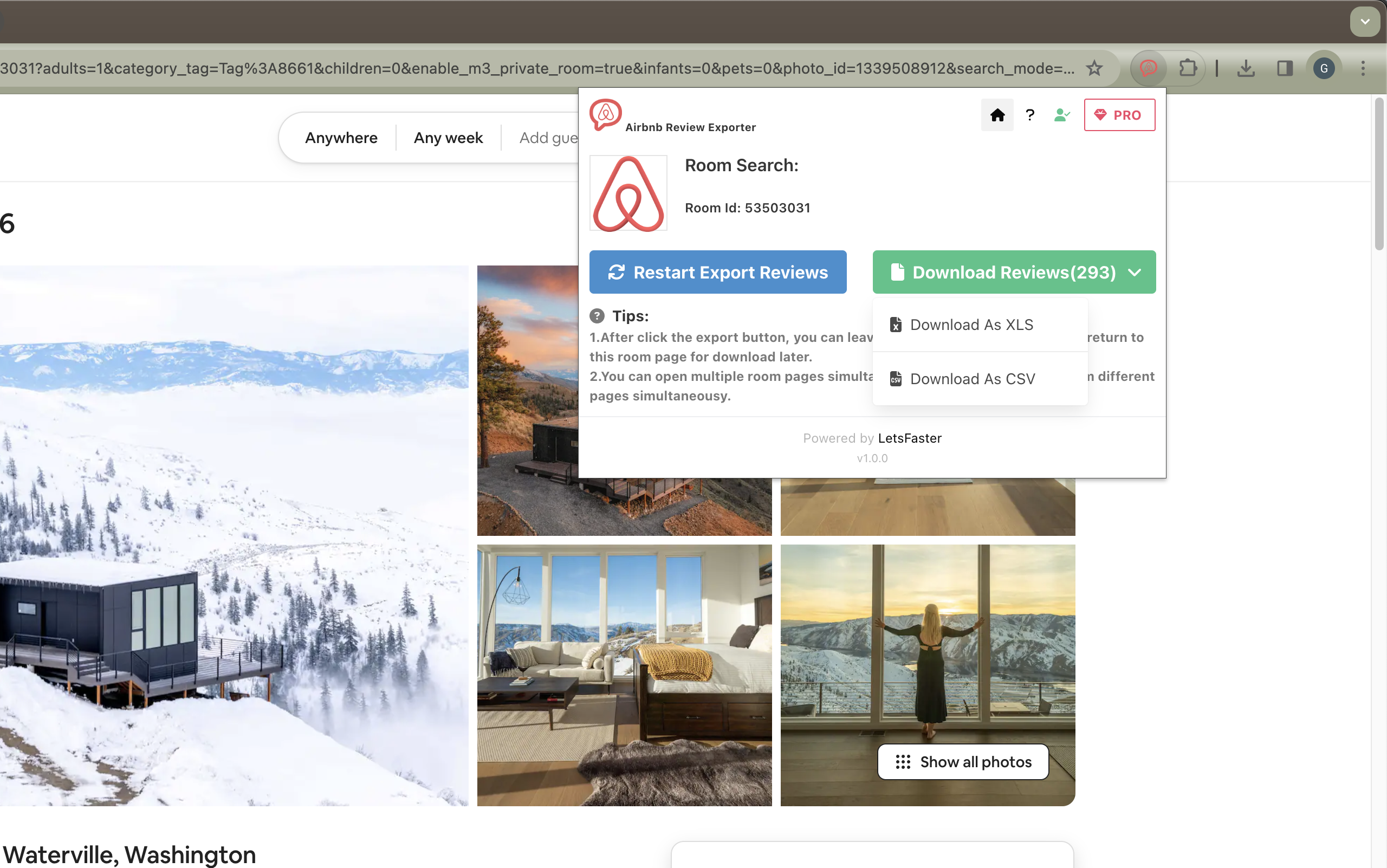 The main features of Airbnb Review Exporter include: Export Airbnb reviews from the room page to a XLS/CSV file with one click.